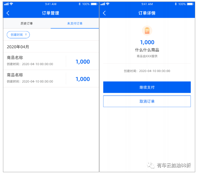 为达成更优秀的用户体验,现新增订单管理模块,可防止重复提交订单,避免用户产生资金损失,如创建订单未完成支付可前往订单管理中重新对该订单进行付款操作,存在未完成支付的订单情况下,不可重新创建新订单;同时支持订单详情查看,按时间筛选订单功能。