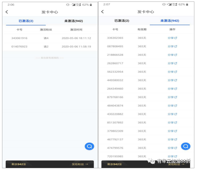未激活:已分享但未激活卡量(该部分卡仅可用于分享用途,不可再次进行单卡出售)