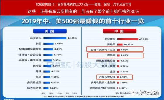 第一,汽车消费领域市场巨大无比。有车云平台所覆盖的产品,对车主群体来讲,不仅是刚需,而且市场巨大,其中汽车所必需的【石油】【保险】和【汽车相关的服务】等已经被列入中国最赚钱的十大行业之中。