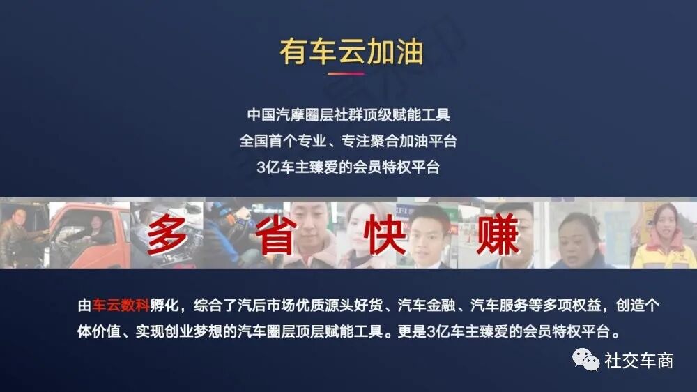 有车云平台就是这一生态网络的重要布局,是通过为车主提供加油优惠、汽车用品、车主增值产品为基础服务,依托产业加资本的渠道和资源及账户、数据、金融、科技、社交流量为一体赋能汽摩产业链帮助商户快速引流拓客。轻松赚更多的钱,从而加快实现产业数字共享时态。
