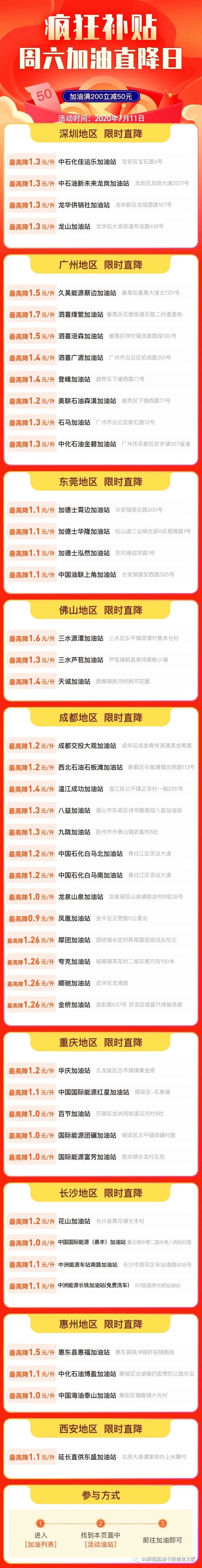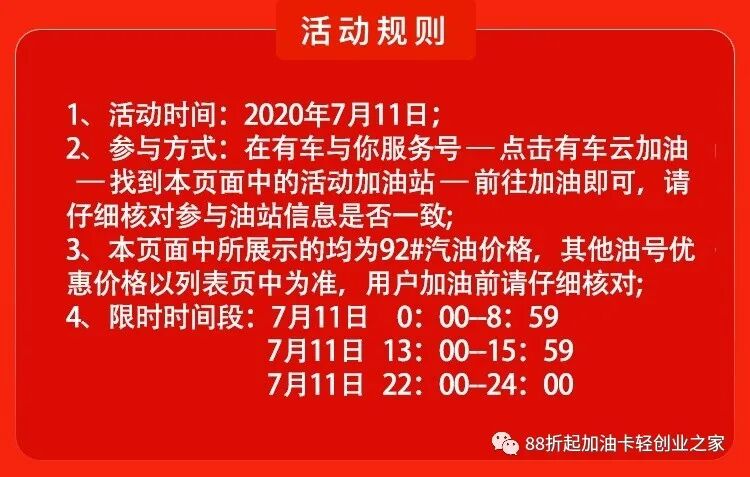 有车云加油卡:7.11日部分加油站限时特惠活动
