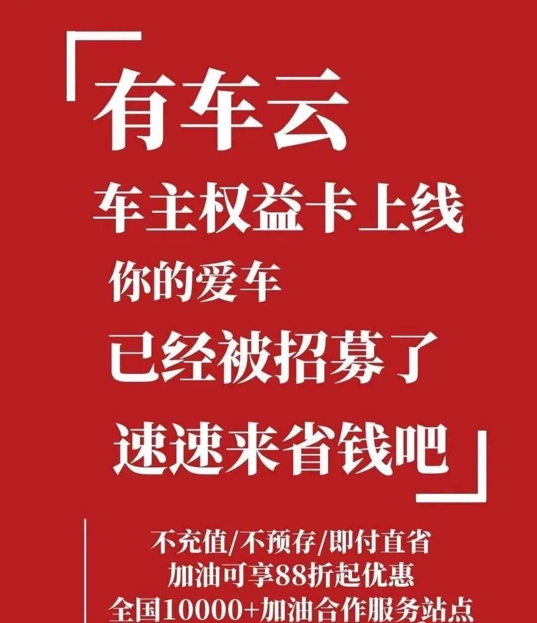 就简单点说就是车云数科是将有车云打造成类似美团,饿了么,飞猪等这样的服务型平台,美团和饿了么是餐饮服务平台,飞猪和携程是旅行购票平台,有车云就是专门服务汽车用户的平台,通过这个平台车主加油可以享受折扣,买保险可以享受最大的优惠折扣,车辆维修保养以及购买汽车用品等增值产品都可以享受到最大的优惠折扣,最终实现产业数字化共享生态。现在有车云推出的第一项爆款产品就是车云卡,通过车云卡就可以在全国近一万个加油站享受88折起的加油优惠!体验还是非常不错的!