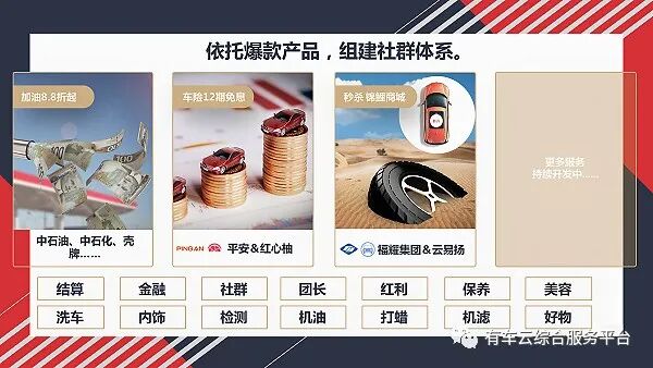 我们将加油卡推广给客户使用后,不仅能赚取卖卡的提成!还能躺赚他后期加油的佣金奖励!当有车云用加油产品布局好了自己的社交营销网络后,有车云接下来会上线汽车保险,汽车贷款,整车销售等等包括金融服务在内的其他产品!每一个产品都是车主的刚需产品。最重要的是,只要是属于你营销网络中的客户,使用有车云的产品,和有车云产生了交易,那么你都能够获得源源不断的销售佣金奖励,这才是真正的睡后收入,管道收益!