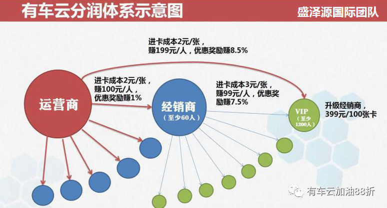 有车云的收益制度很简单,首先是会员制,必须有邀请人才能激活会员使用有车云加油优惠和其他服务,其次会员购卡100张即可获得推广资格,我把收益关系图和解说视频发给大家。