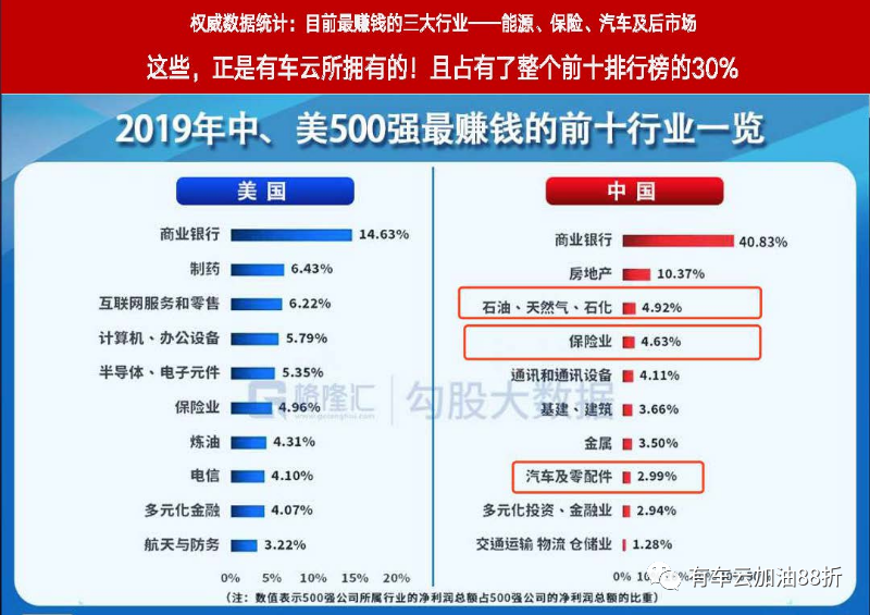 有车云平台所覆盖的产品对车主群体来讲不仅刚需而且市场巨大,其中汽车所必须的石油、保险和汽车相关服务等,已被列入中国最赚钱的十大行业之中。