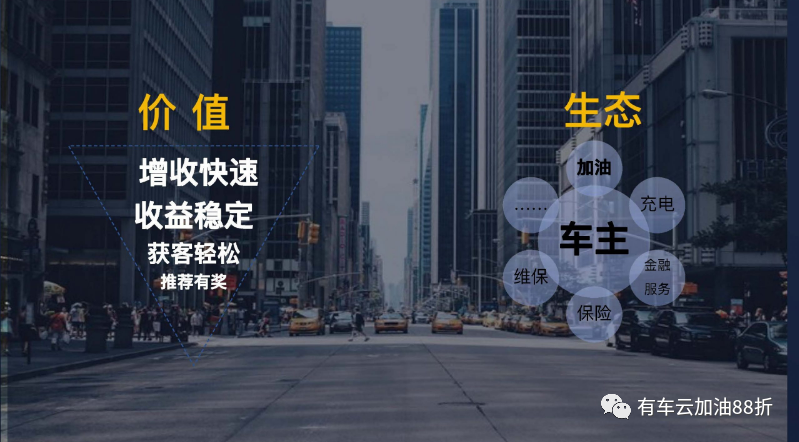 而当前参与有车云的价值就在于有车云尚属起步初期,在这期间可以用低门槛且刚需的加油优惠权益教会你身边的客户如何加油省钱,锁定关系构建自己的营销网络,后期每一个产品的上线都会跟你有直接的收益关系,现在作为有车云的推广者正如曾经百度、支付宝、微信,美团前期的推广者一样,占领渠道就是占领管道,接下来结合之前的项目选择建议我给大家分析一下有车云为什么值得我们参与。