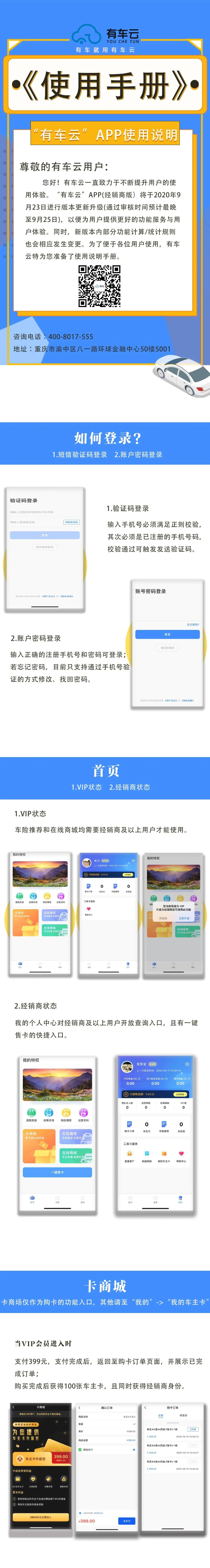 您好!有车云一直致力于不断提升用户的使用体验。“有车云”APP(经销商版)将全面进行版本更新升级,以便为用户提供更好的功能服务与用户体验。