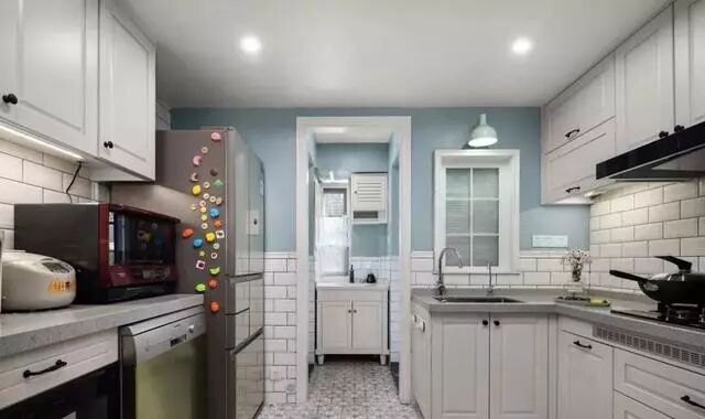 橱柜绝对是厨房必需,那么多厨具总得有个拾掇的地方。混放一起存取都不方便,所以橱柜最好做大小不等的分割,把餐具分门别类,待在它的位置,方便又整齐。