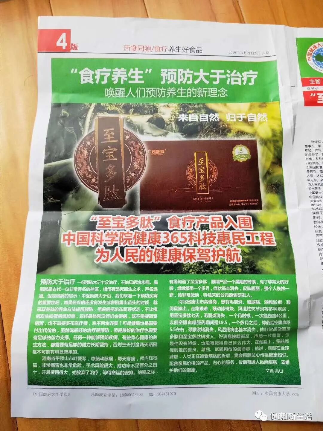 1)【至宝多肽】攻克了血栓这一危害人类健康面临的共同难题。“谁掌握了溶解血栓的技术,谁就拿到了防治慢性病的金钥匙!”【至宝多肽】的问世,为造福人类健康作出了重要贡献。