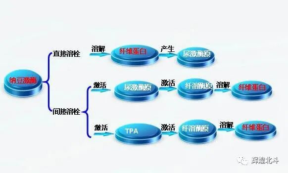 其中,纤溶酶和蚓激酶能直接溶解形成人体血栓的主体物质纤维蛋白,从而发挥强力的直接溶栓作用;纤溶激活蛋白则是激活人体中的tPA,再由自身产生纤溶酶原,进而转化为人体的纤溶酶,由于这种方式是由人自己产生纤溶酶,这样间接溶解血栓,就大幅提高了其安全性。