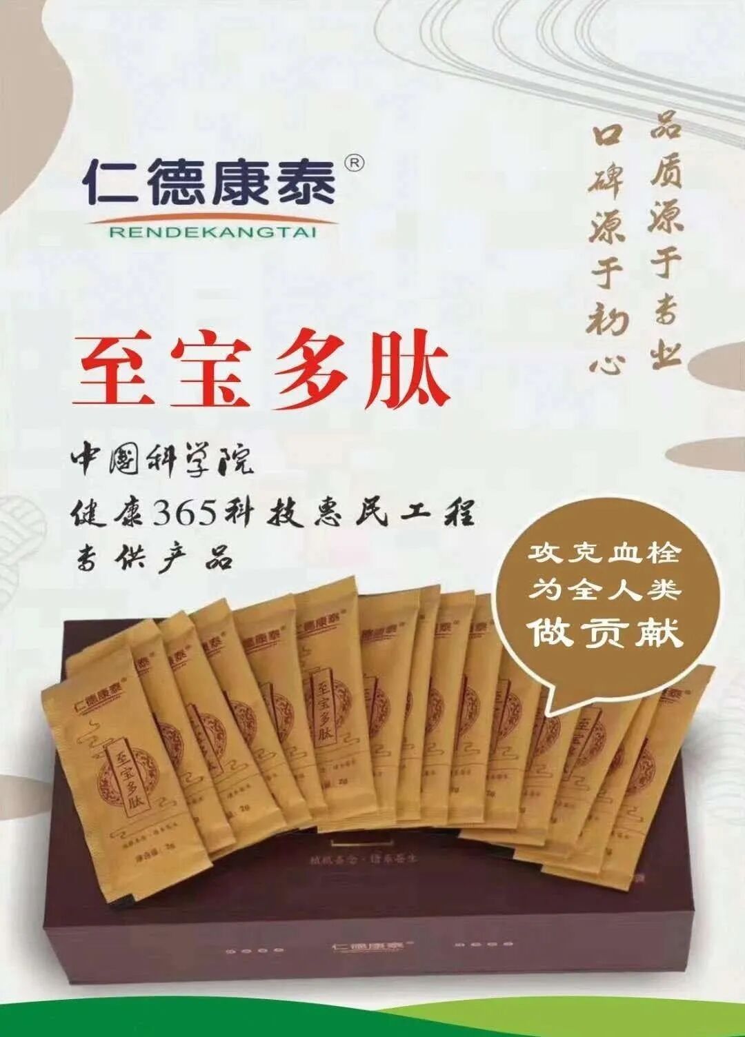 【至宝多肽】是由天然溶栓物质:蚯蚓蛋白、纳豆粉等有效成分配伍,具有抗血凝、溶解血栓的强大作用,是强效、安全的溶栓产品。至宝多肽是一款叫肽而不是肽的产品,它是低温萃取的带有活性的物质。主要成分:1、地龙蛋白2、纳豆粉3、保密配方是获得发明专利和药食同源证的食品级产品,该产品主要突破了世界性的两大难题:1、细胞的排异性2、胃酸对酶的分解该产品能快速分解血液中的纤维蛋白,清除血液里的垃圾毒素,打通微循环,恢复血管的弹性。对由于淤堵引起的一切症状,具有很强的辅助作用。至宝多肽就是一款打通微循环的金钥匙,恢复自身的自愈力,开启健康新生活。