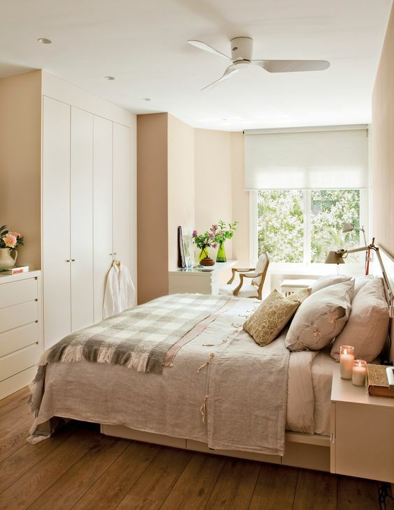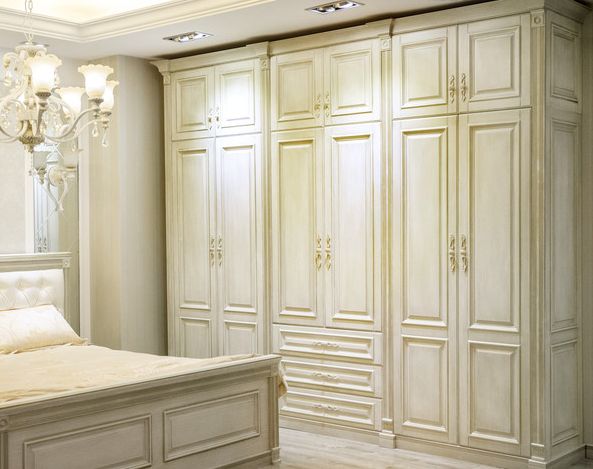 很多家庭会把衣柜摆在房门左侧,睡床旁边,正对卧室窗户。这样摆的好处是,不会挡到窗户,对卧室采光有利。