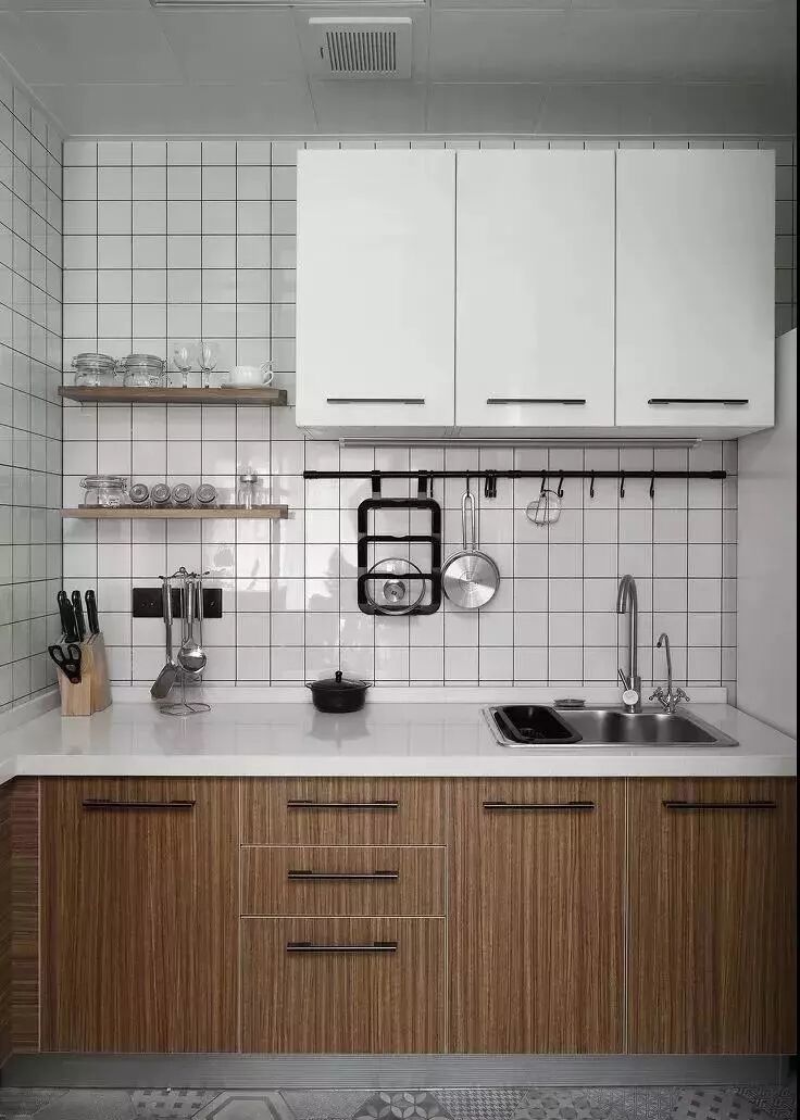 厨房吊顶结束之后再安装橱柜,吊顶安装结束后厨房的高度才真正确定下来,可以根据总的高度适当调节吊柜的高度,兼顾吊柜使用的便利性和整体美观;