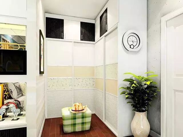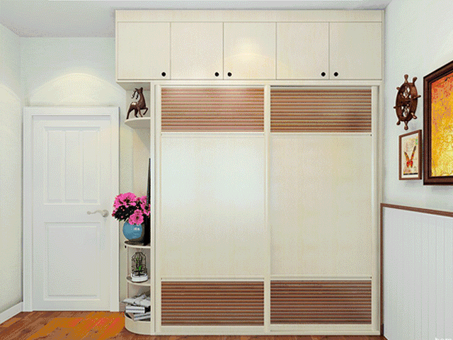 最具有普世意义的一种衣柜样式,适合绝大多数的家庭。因为与门相邻,因此要将柜边设计成弧形。