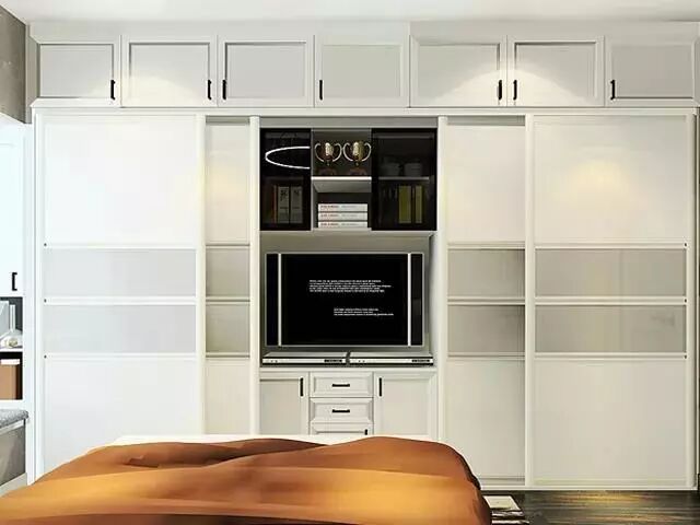 你能想象俩人挤在电脑前追剧的场景吗?瞬间感觉回到了大学宿舍。内嵌式的电视衣柜组合设计,能躺在床上一边煲剧一边聊天,比沙发上舒服多了。