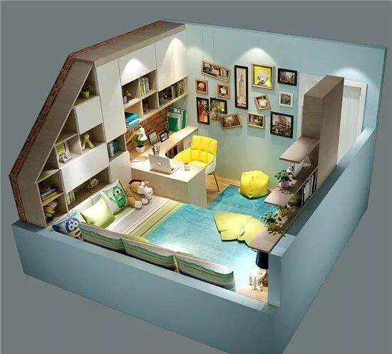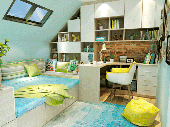 根据斜顶走向,嵌入式定制书柜/收纳柜