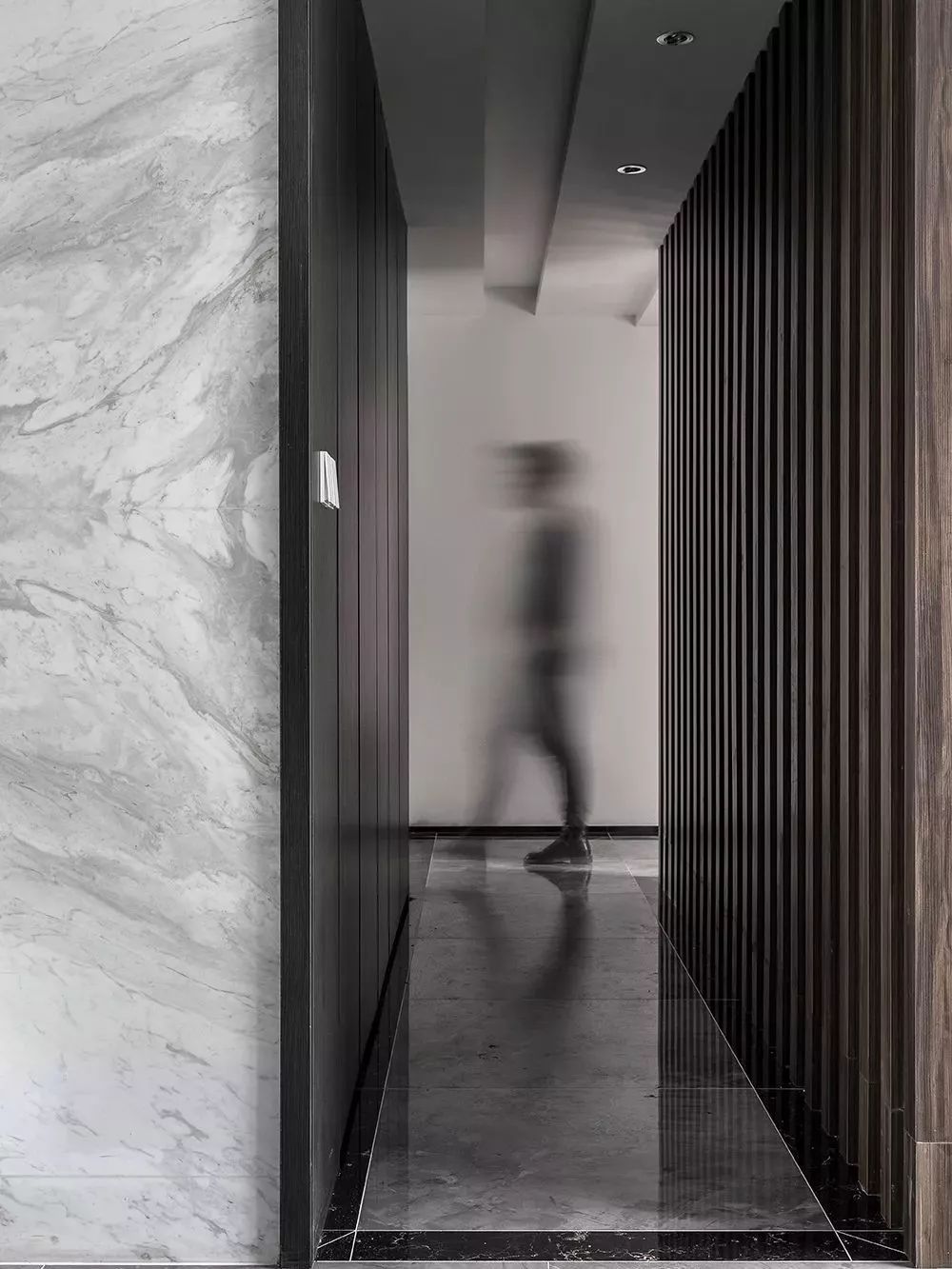 通过对形状轮廓和光影进行高度归纳和提炼,利用干净利落的线条和黑白高反差,塑造强烈的视觉冲击力。静谧的黑,与装置艺术互映成画,区域的斑驳纹理,让人感知到另一种宁静的东方美学。