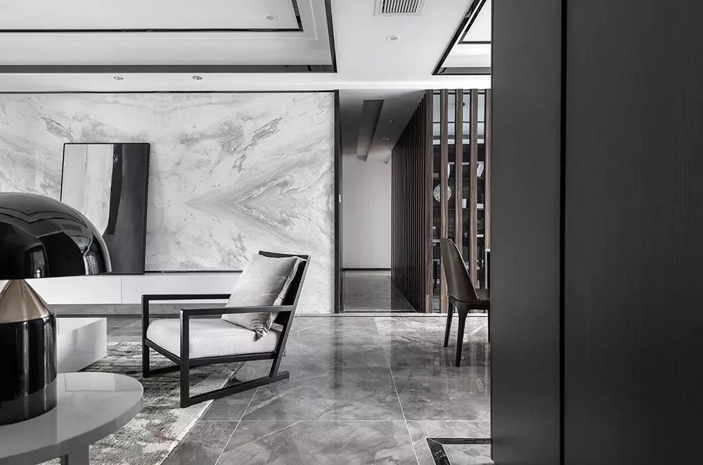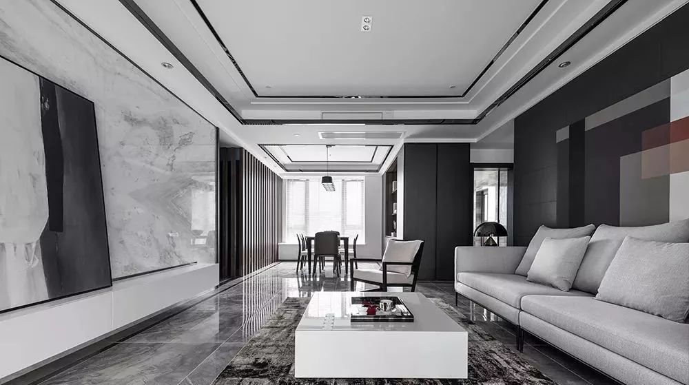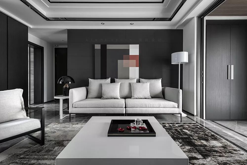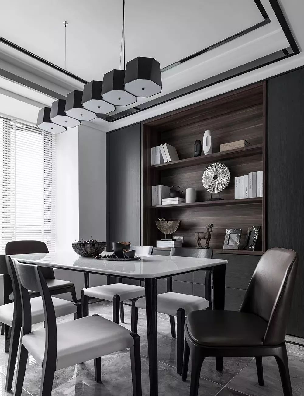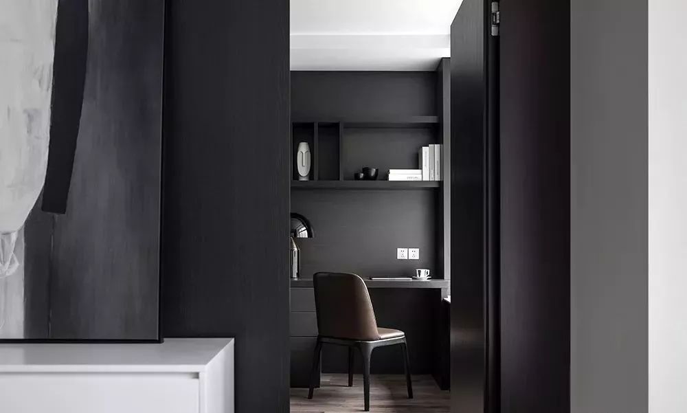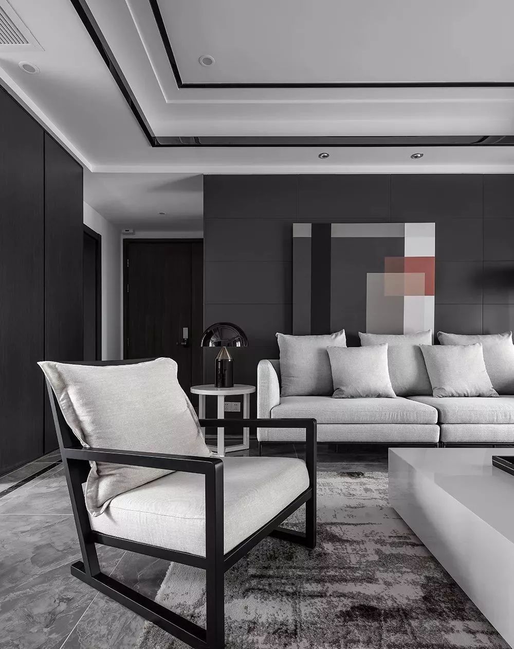 与客厅一脉相承的设计风格,黑白灰的设计格调,完整的功能分区,以细节体现品味,回归家居设计的本质。