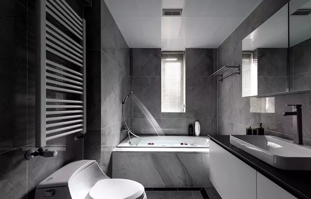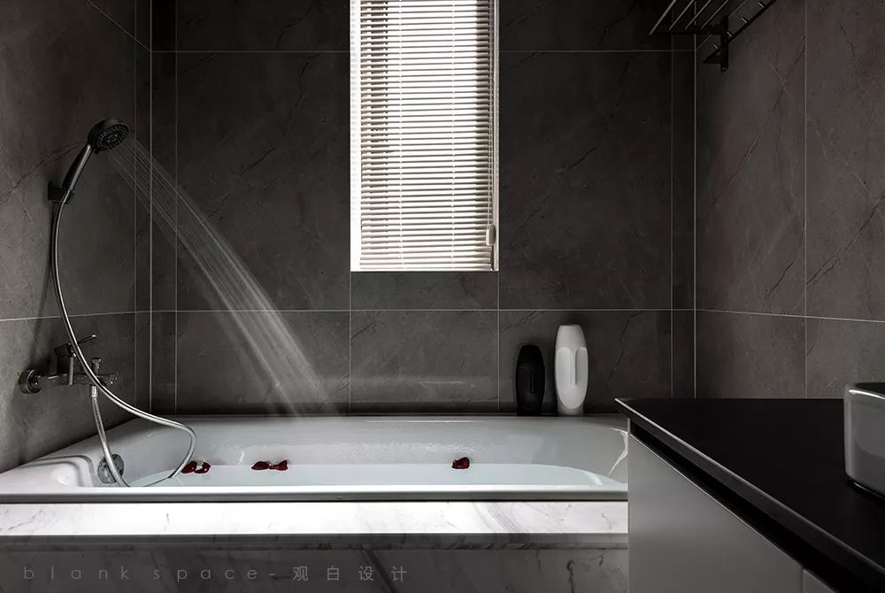 高级黑白灰设计格调,将现代美学与生活相融合,简约低调是这套房子的设计风格,卫生间干净通透。