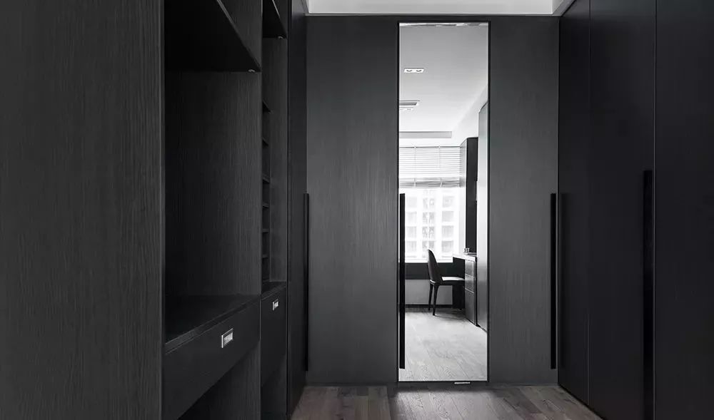 “简单和舒适是衡量一个空间的完美尺度”。卧室营造了日常作息宁静、安稳的氛围,但细节的选择和处理还是体现了屋主对生活的品味。衣帽间整体设计处理简洁,但细节比例和功能设计关系关联好,在分隔与组合之间巧妙转换。