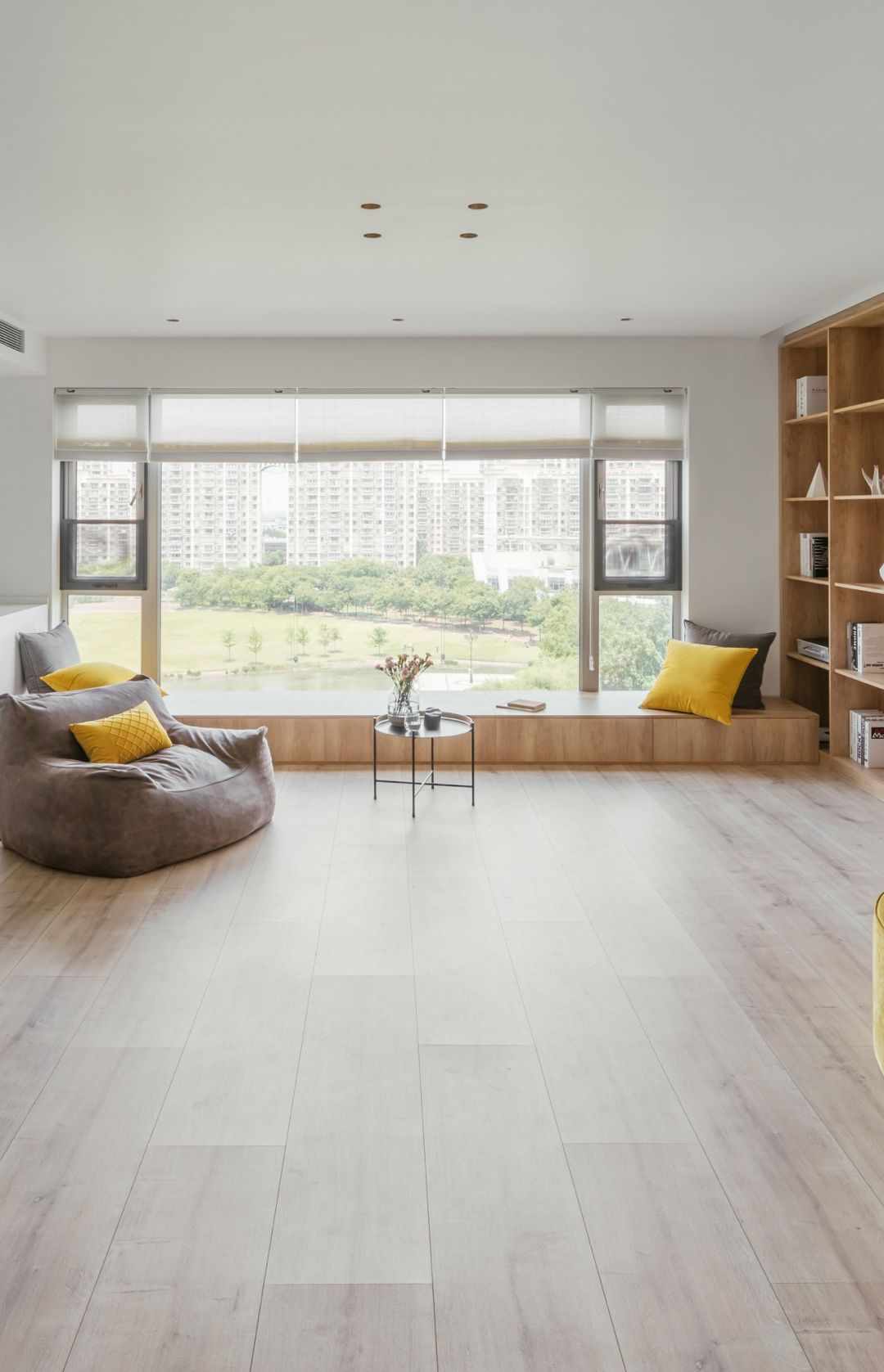 149㎡现代简约设计,空空如也的客厅,落地窗+大书柜=完美!