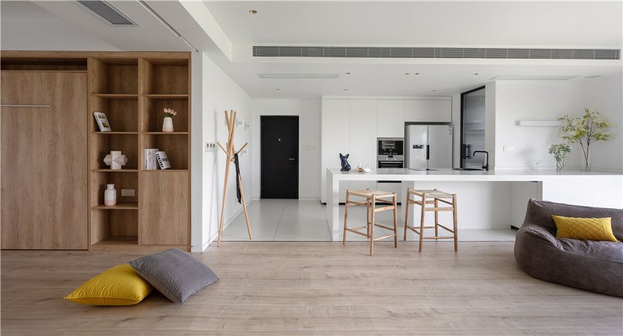 整体装修都走极简风格,设计师力求将每一个空间都打破常规,去除任何繁杂之物,只保留实用、够用、精致的物件。