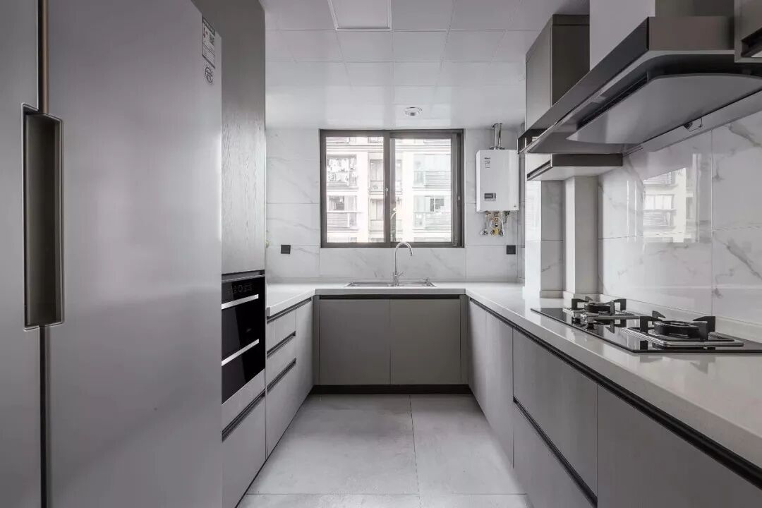 ▲厨房U型的空间布局,把冰箱、备餐、冲洗、烹饪区分布开,实用而巧妙。