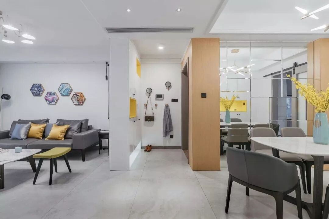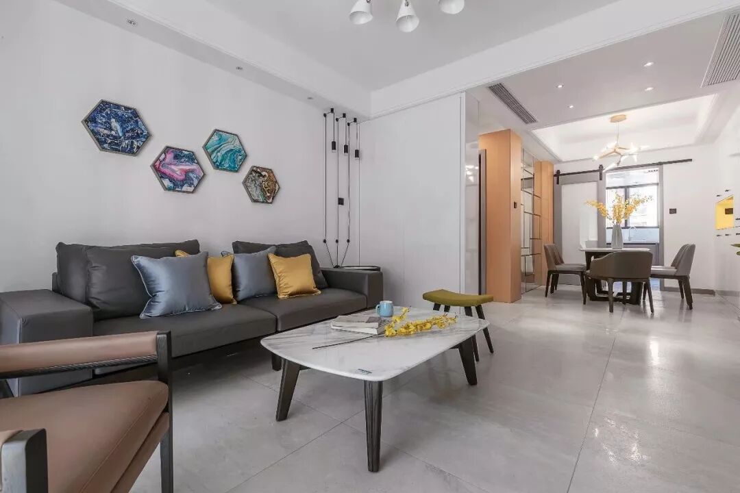 这套仅有90平左右房子,以宽松的小二房布局,在有限的空间内通过巧妙的设计搭配,营造出一个优雅时尚而又充满活力的氛围。