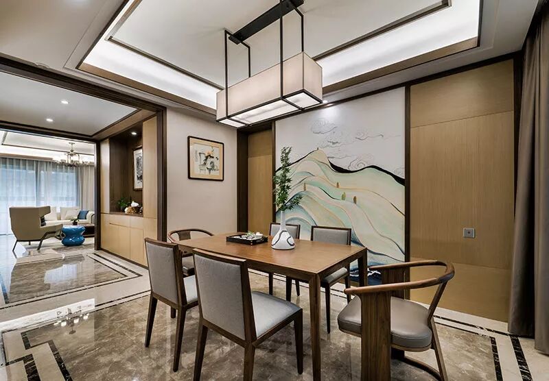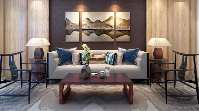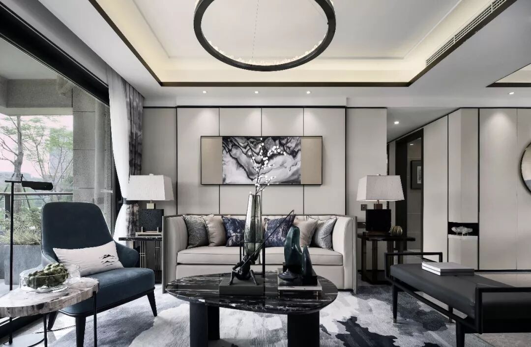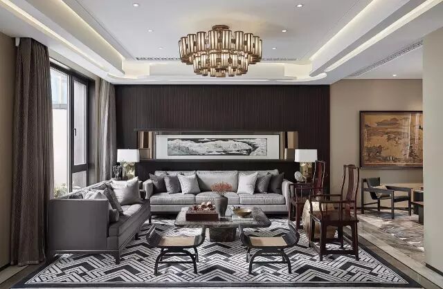 在造型、材质、家具、软饰等各种不同空间元素的运用上巧妙融合,一个高贵、大气的家居氛围就能充分展现出现代居室的时尚感。