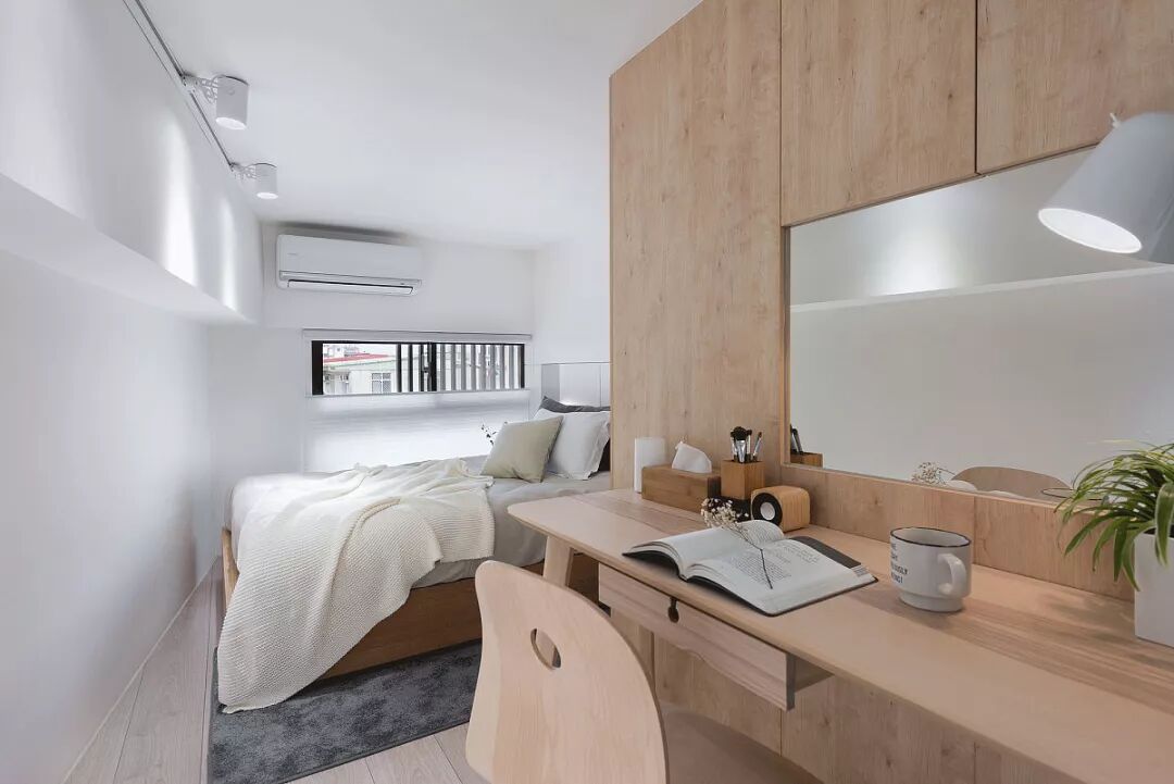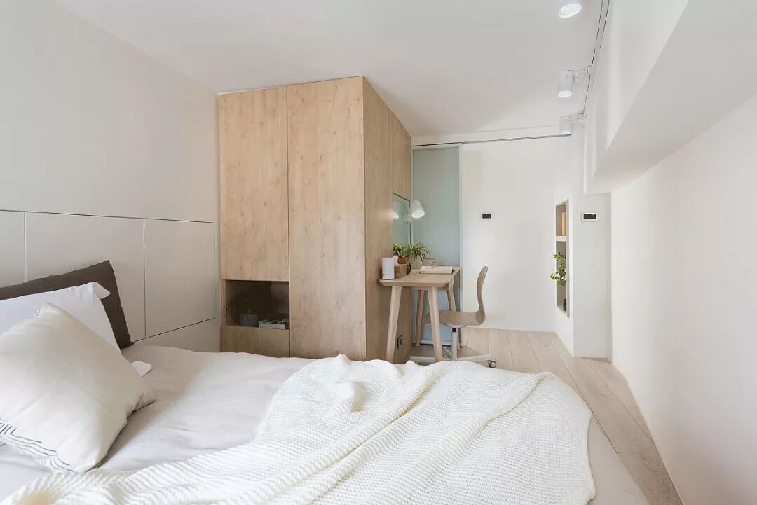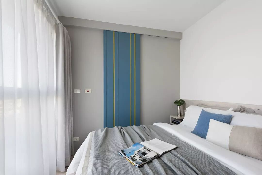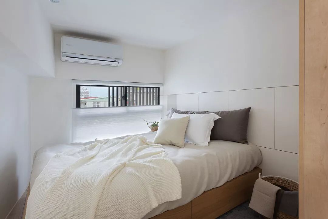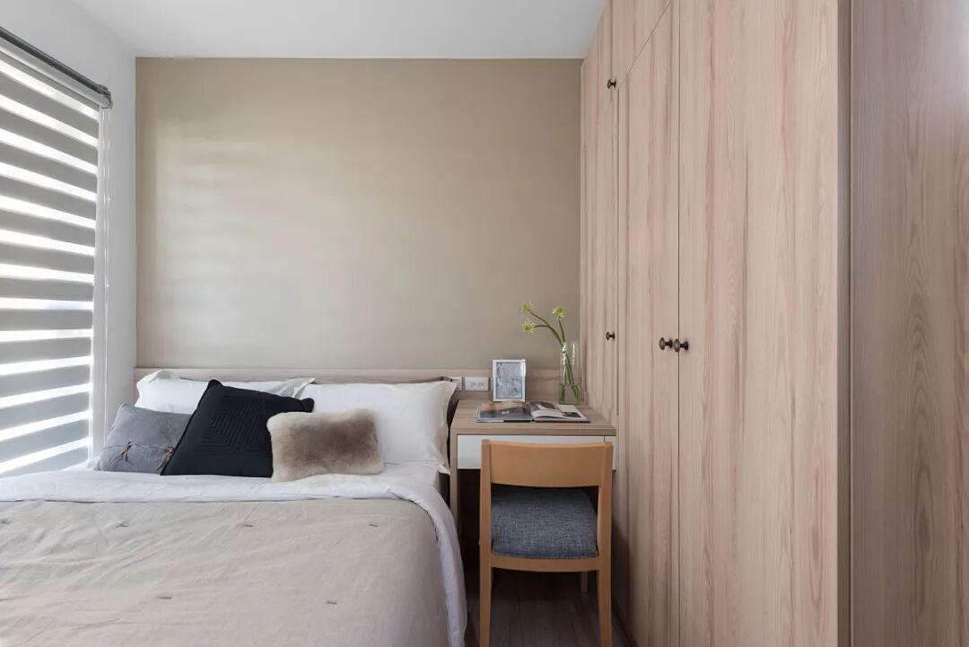 主卧窗边延伸卧榻休憩空间,疲累时放鬆眺望远景,大面採光的光洒