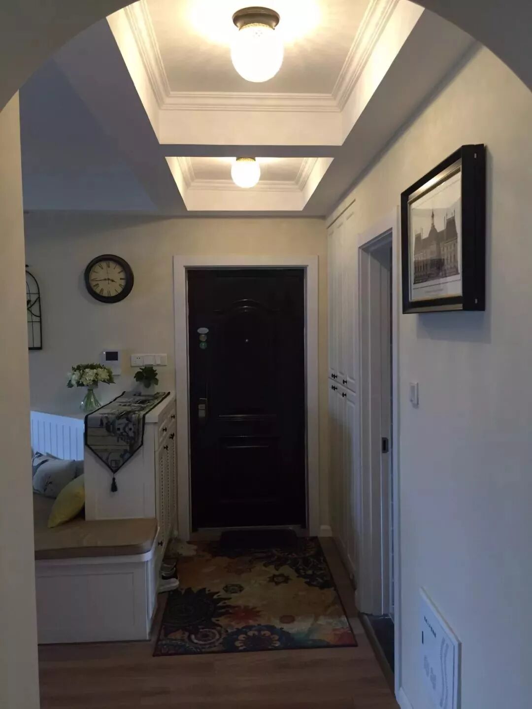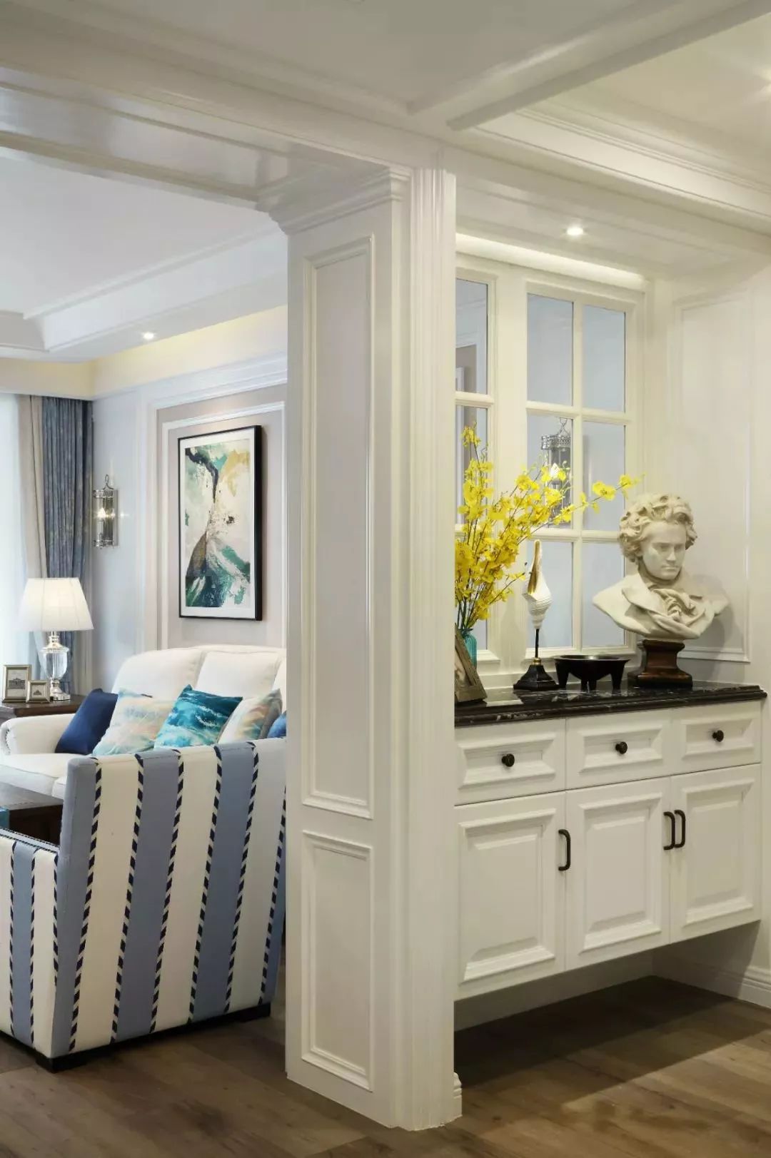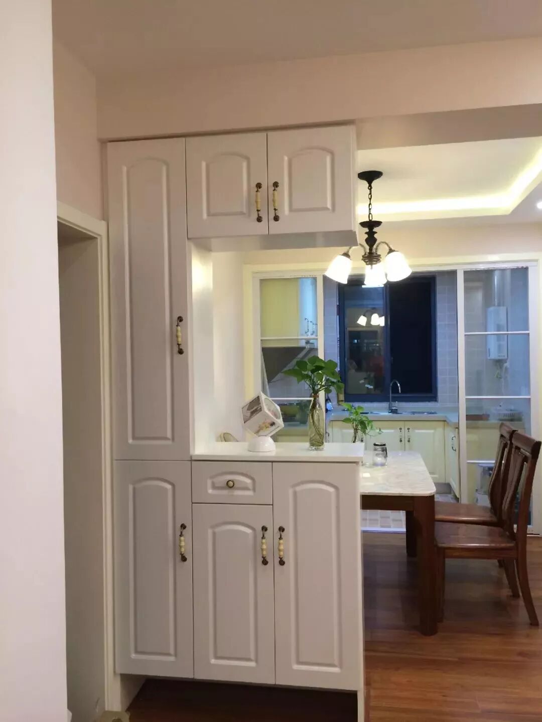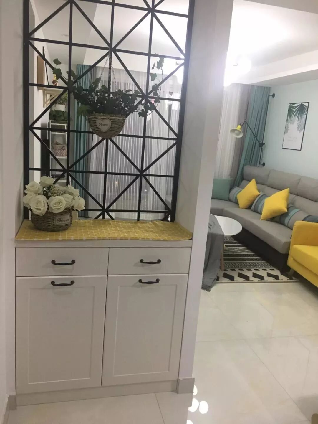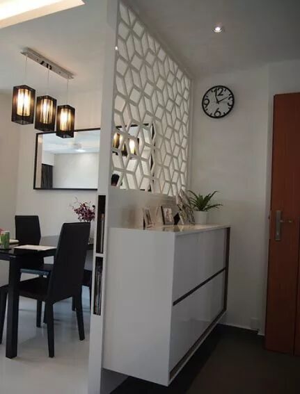对于一进门就直对客厅或餐厅的户型,就可以在大门与客餐厅中间装个隔断+鞋柜组合的设计,增加空间的私密性,同时又增加了空间的收纳功能。