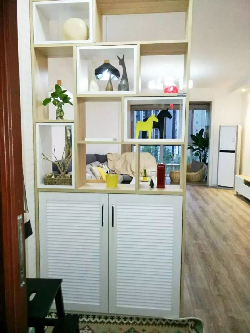 对于一些大门位置比较尴尬的户型,不仅存在大门直接卫生间或阳台的问题,同时鞋柜的摆放位置也比较为难,遇到这样的户型情况,可以通过鞋柜与隔断组合起来设计,这样的设计可以实现一举两得的功能,是个值得大家参考的好方案!
