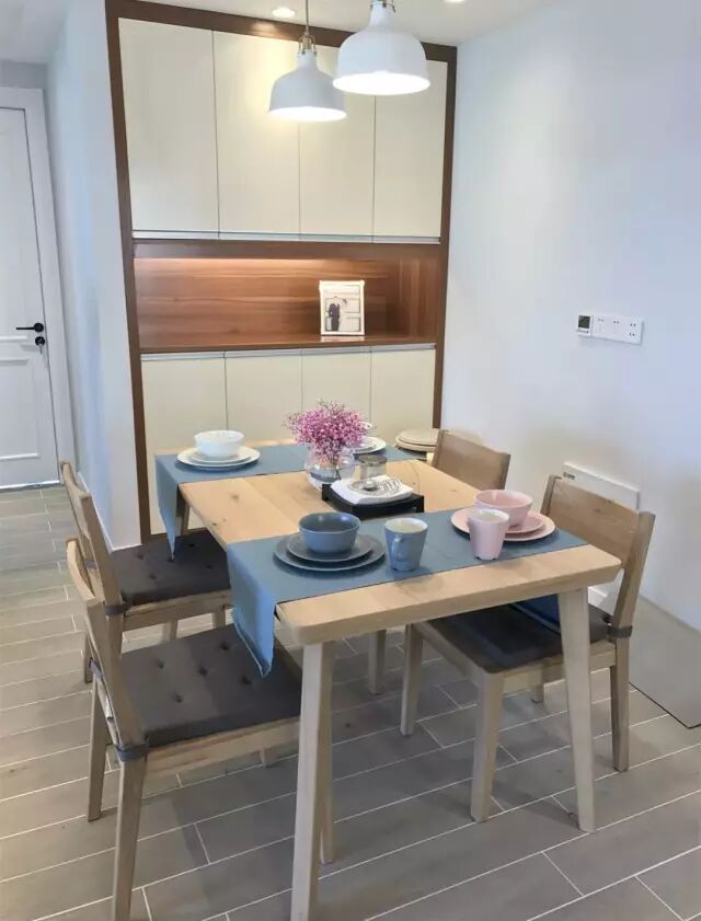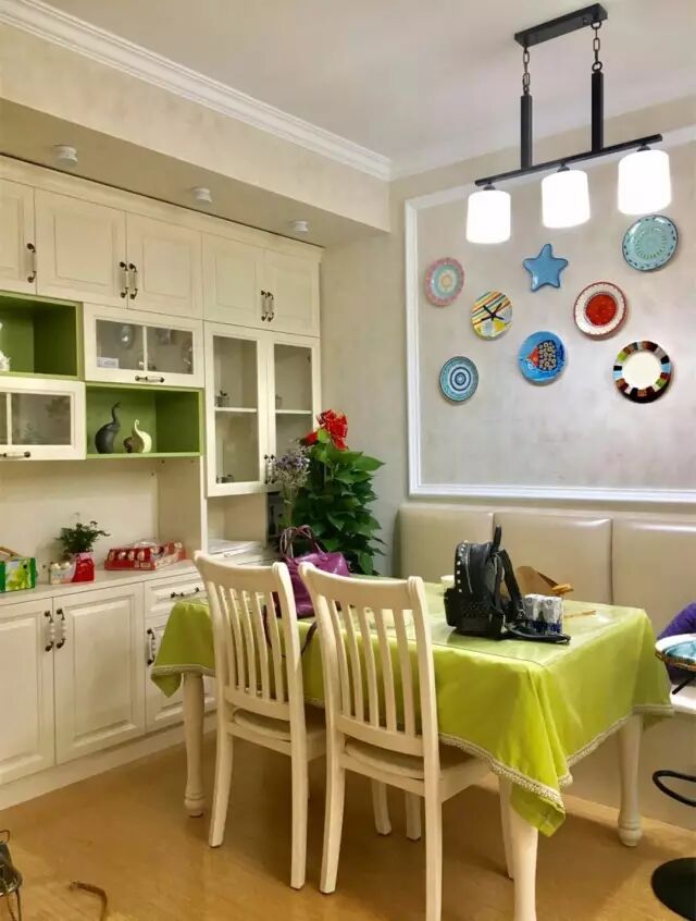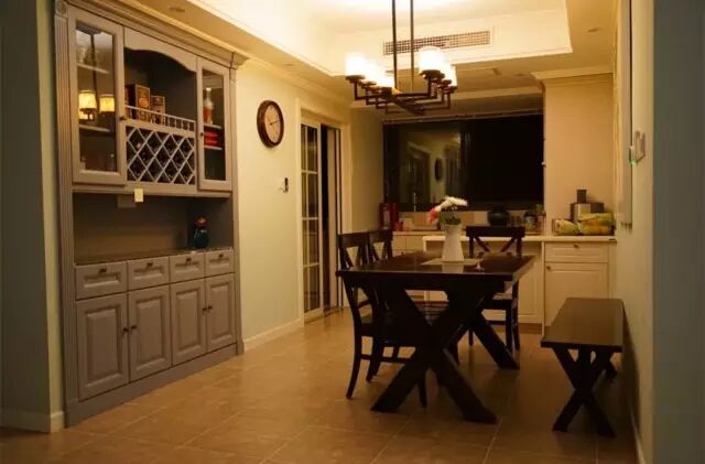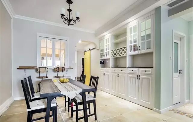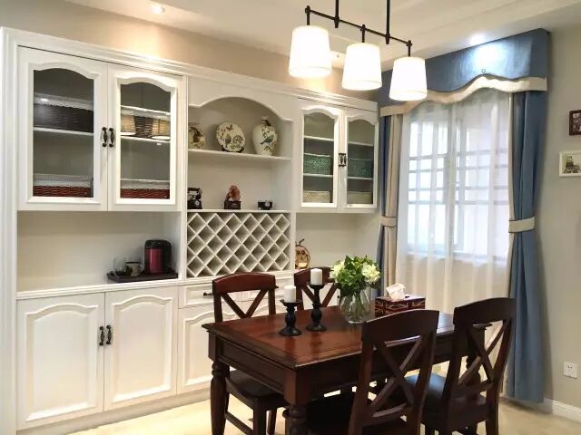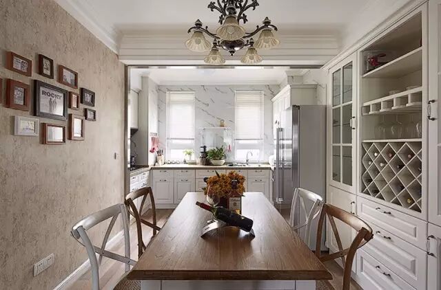 8、中部留空+上下收纳柜的酒柜,也是比较实用简洁的,摆上一张小照片,餐厅氛围浪漫又温馨;