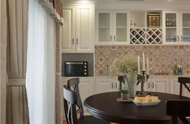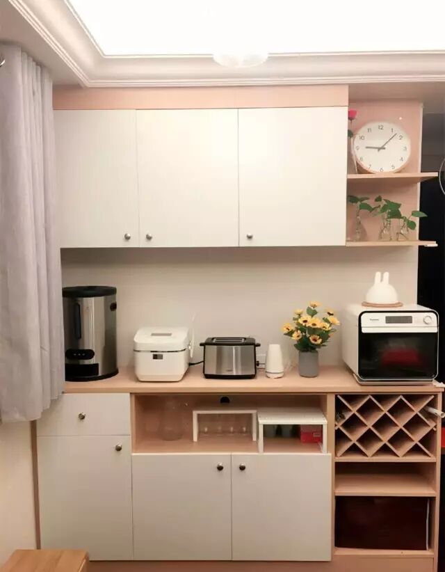 5、如果厨房比较紧凑的,可以考虑把微波炉也摆到餐边柜这边;