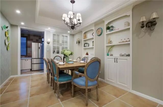 9、餐边柜酒柜上的收纳格,摆上精致的装饰品,也是相当的惬意情趣的;