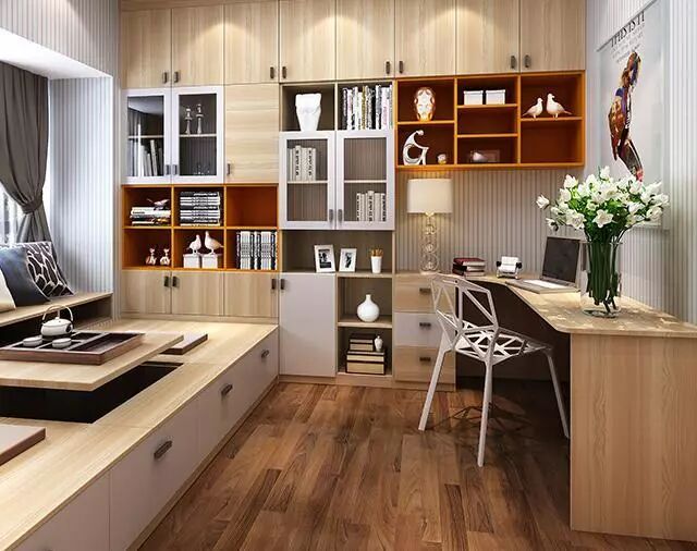 书房将书桌、书柜、榻榻米一体化,协调和谐,一房多用,实现多功能运用,提升空间利用率。简洁清新,带着优雅自然的风范。