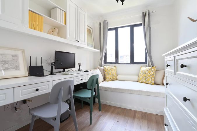 在榻榻米下方设计矮柜,或在书柜中增加隔板,既方便收纳书籍和杂物,也可以让书房看上去更干净利落。