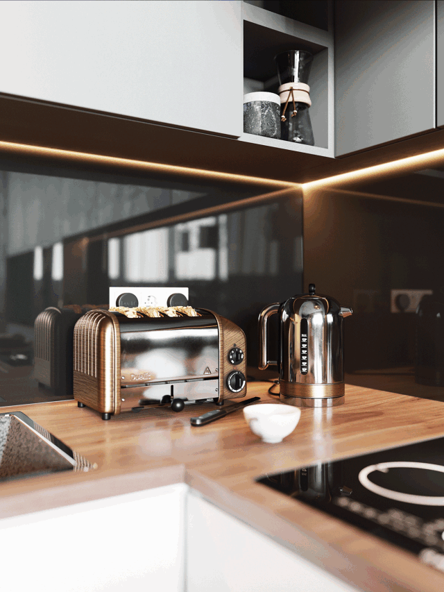 吊柜底部还设计了隐藏式灯带,