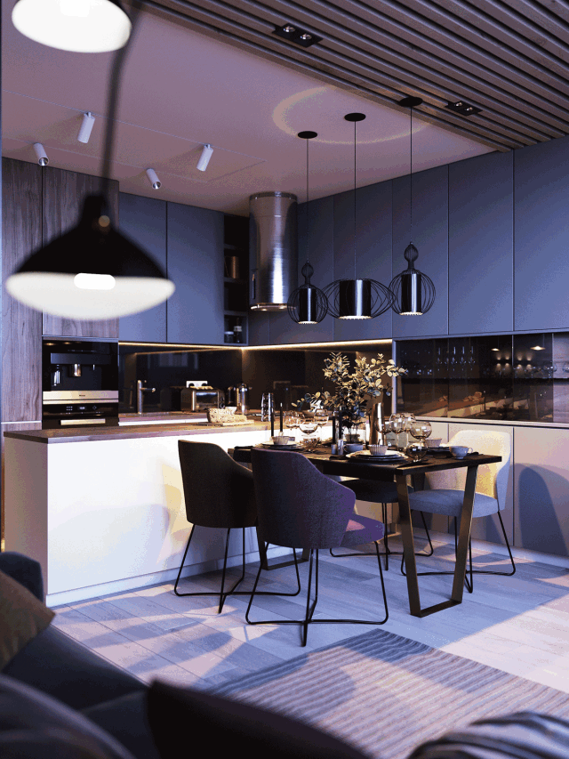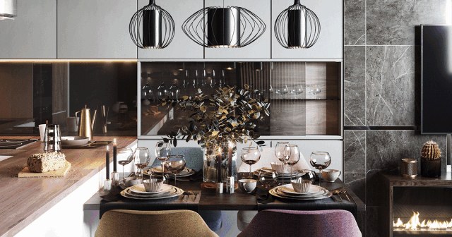 桌子上方采用不同形状的吊灯装饰,