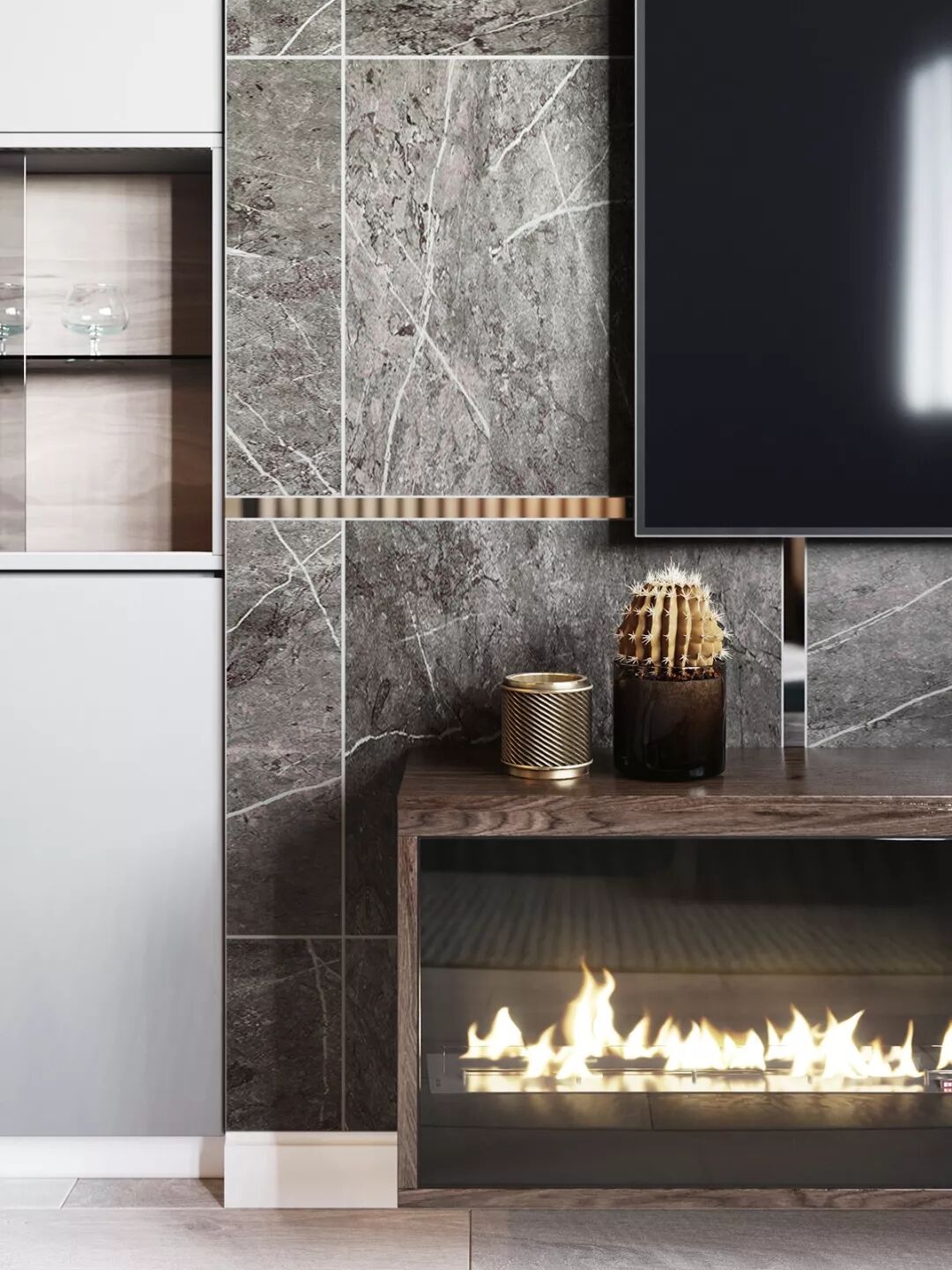下方还有熊熊燃烧的壁炉装点气氛,