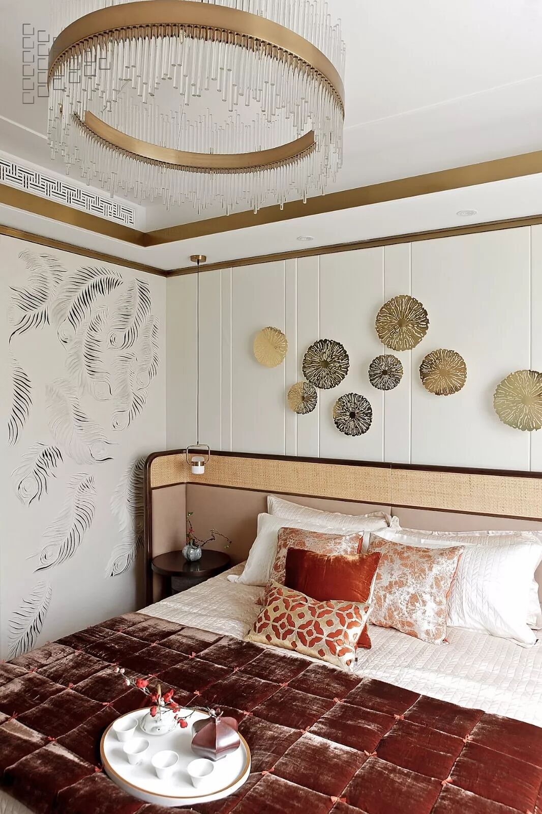 卧室选用白色圆形的灯体,配上与房间相呼应的金色显得闲适雅致,金色材质与经典白与空间相融合,让室内寂静而不失光彩,既大气又优雅。