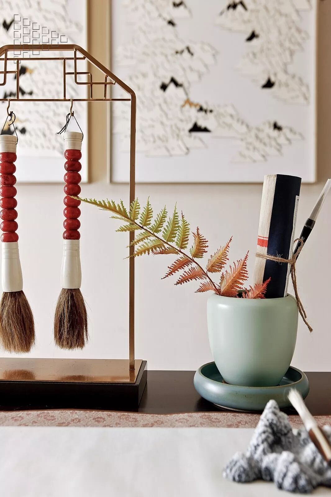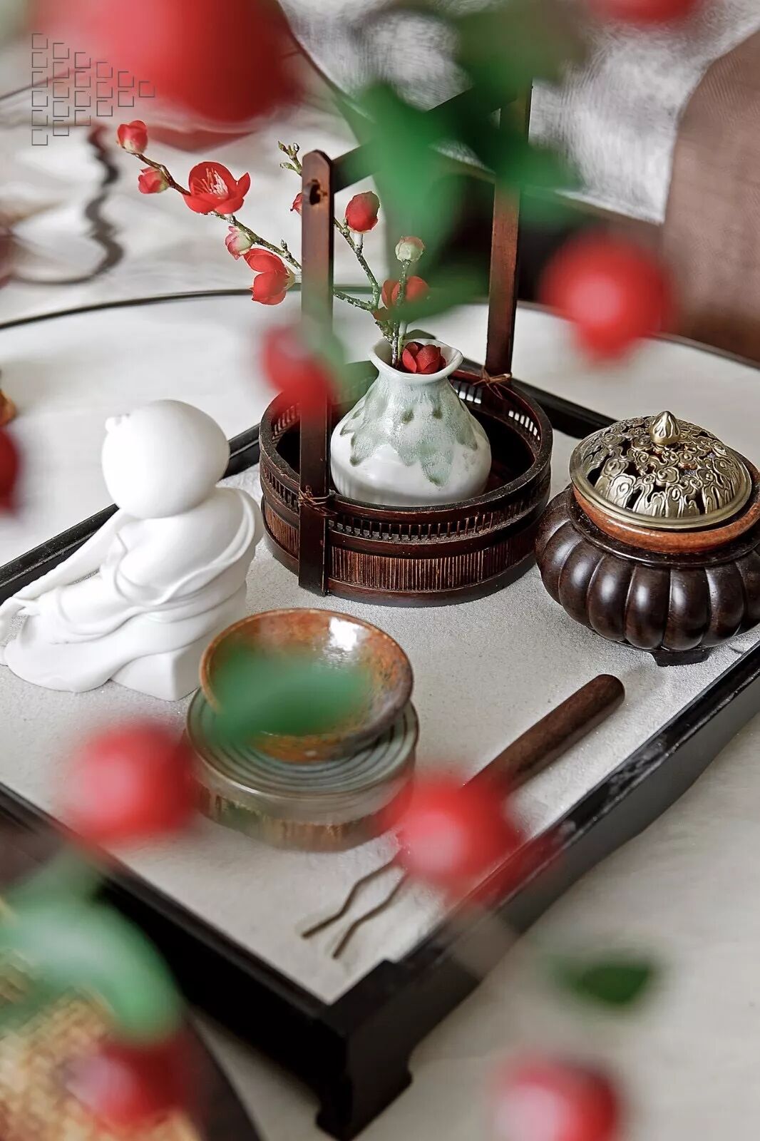 绿植是新中式风格中不可或缺的元素,除了绿萝、凤尾竹、滴水观音等观叶植物,树雕、盆景等也是不错的选择。