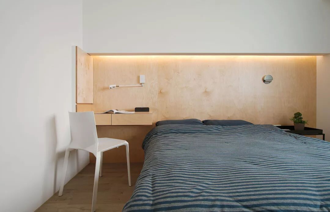 卧室的设置较为简洁,床、衣柜、梳妆台,虽然东西不多,但都是清新的原木色系,有利于睡眠氛围的营造。