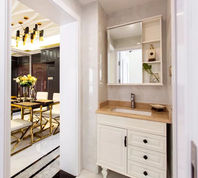 ▲卫生间把洗手盆设在走廊区域,简易的小空间也是功能齐全。