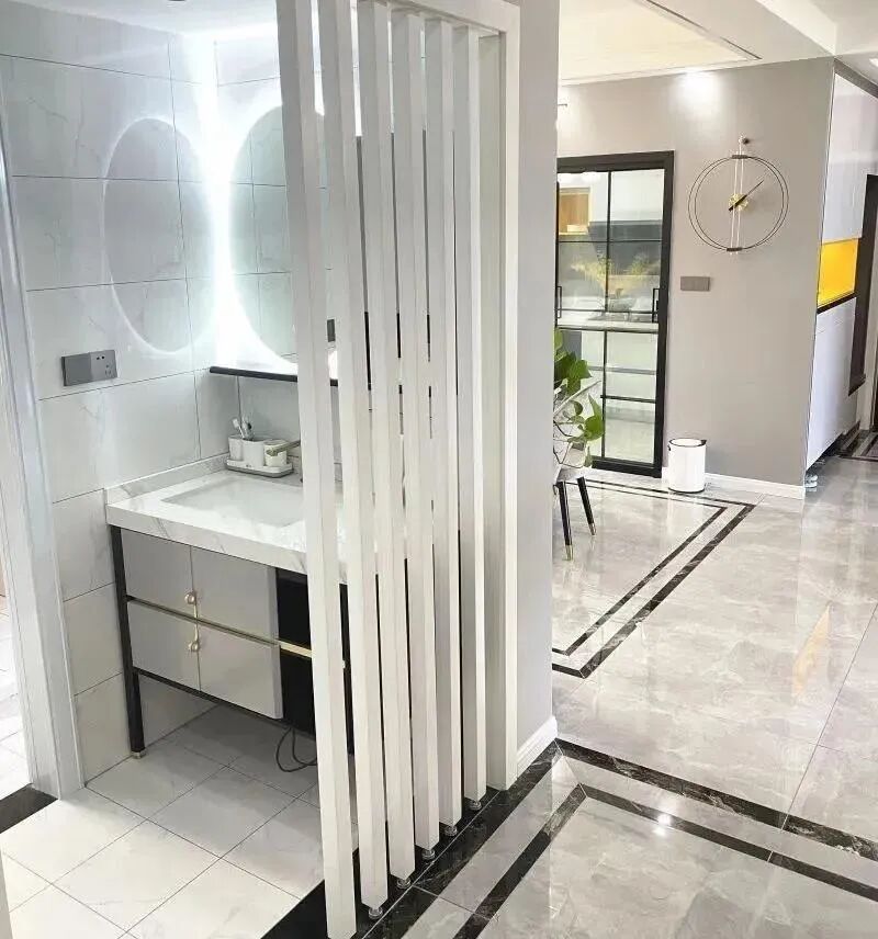 洗漱区用白色格栅隔断,不仅保护了隐私,而且不影响光线透入,空间更明亮。
