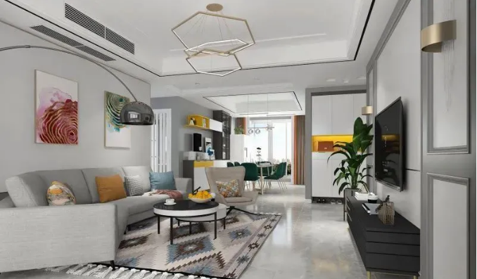 吊灯造型别致,简约的线条充满设计感,餐厅更有精致气息。