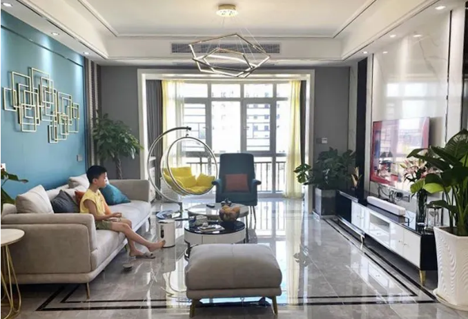 客厅阳台之间只装了门套,光线充分涌入,非常明亮,令人心情愉悦。