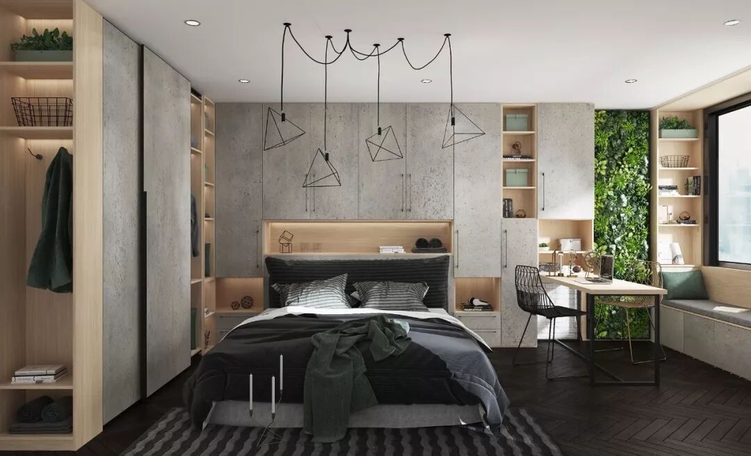 靠墙设置为一体化,留出大块面区域灵活使用,如果想要增加房间的灵活性,那么不妨尝试多功能书房。采用立翻床+书桌来提高房间的利用率,不仅实用,还给家里增添了许多家居趣味。