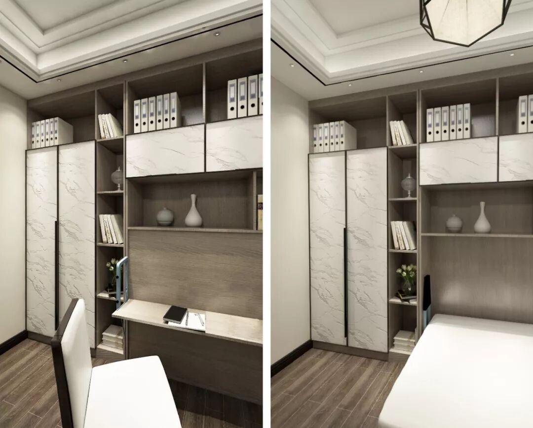 增加收纳空间的同时,也不影响书房的正常使用,让其在客房和书房之间随意切换!