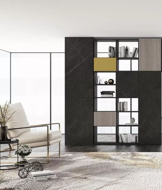 将书房搬到客厅,提高客厅空间的利用率,利用客厅沙发来充当天然隔断,形成一个小小的围合区。